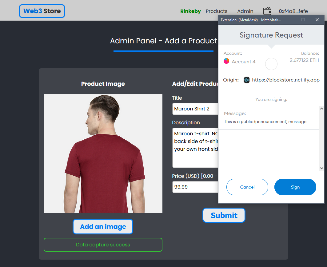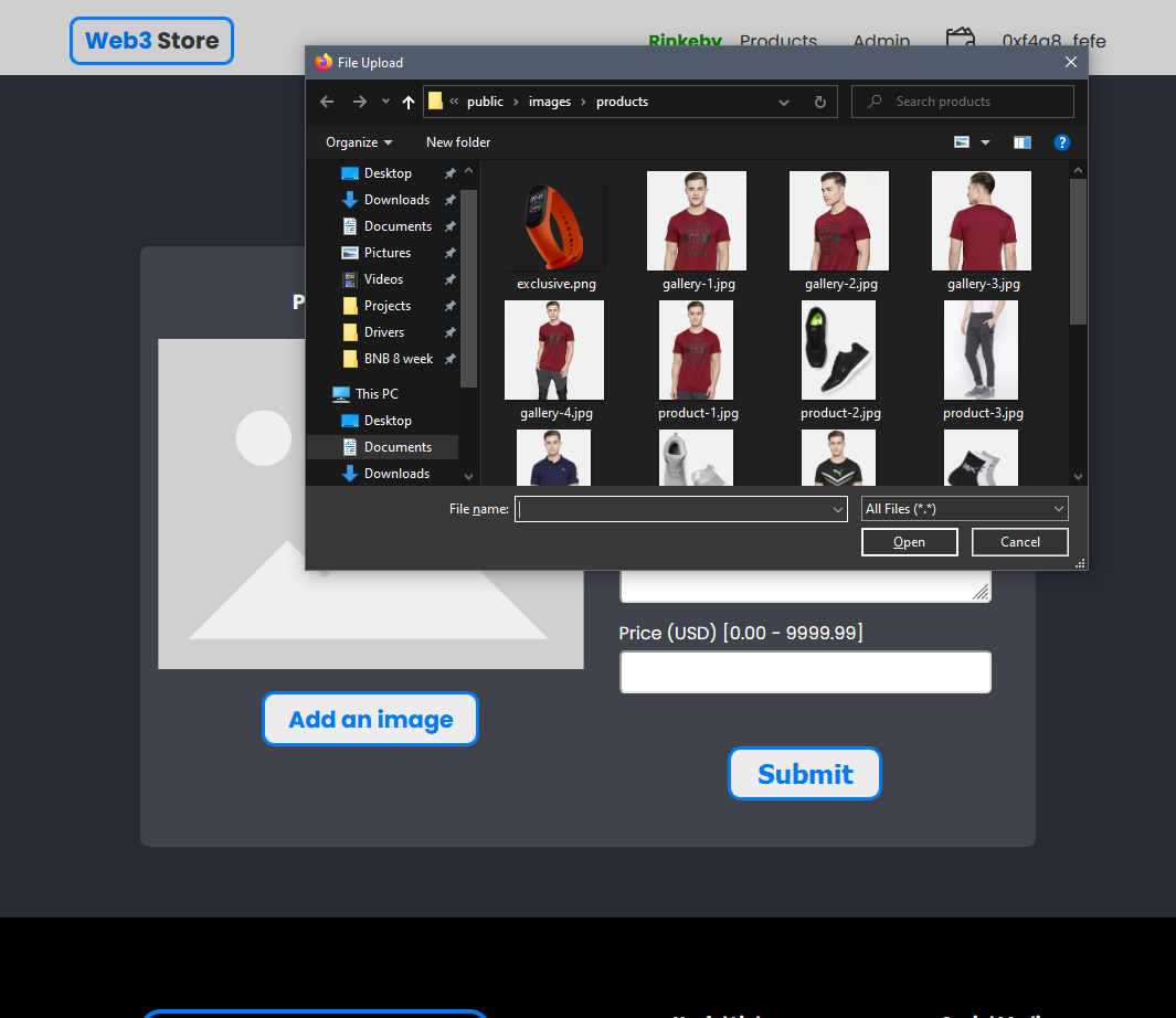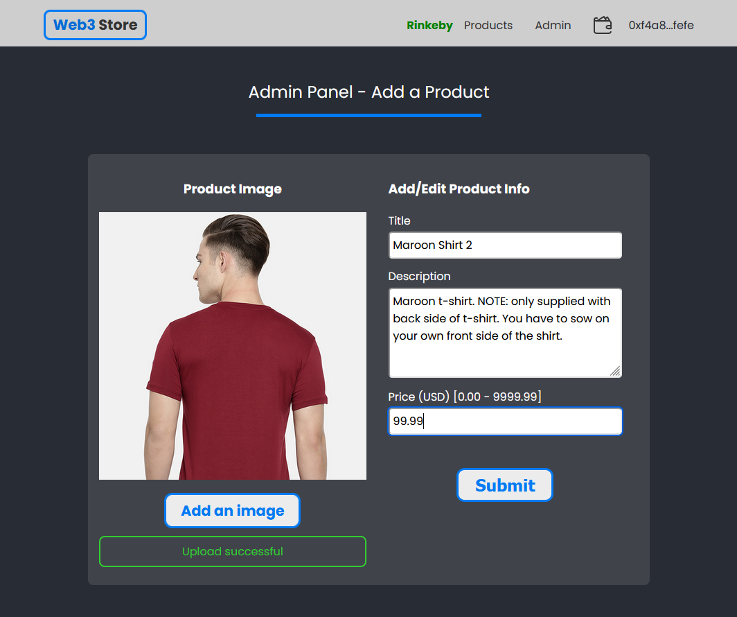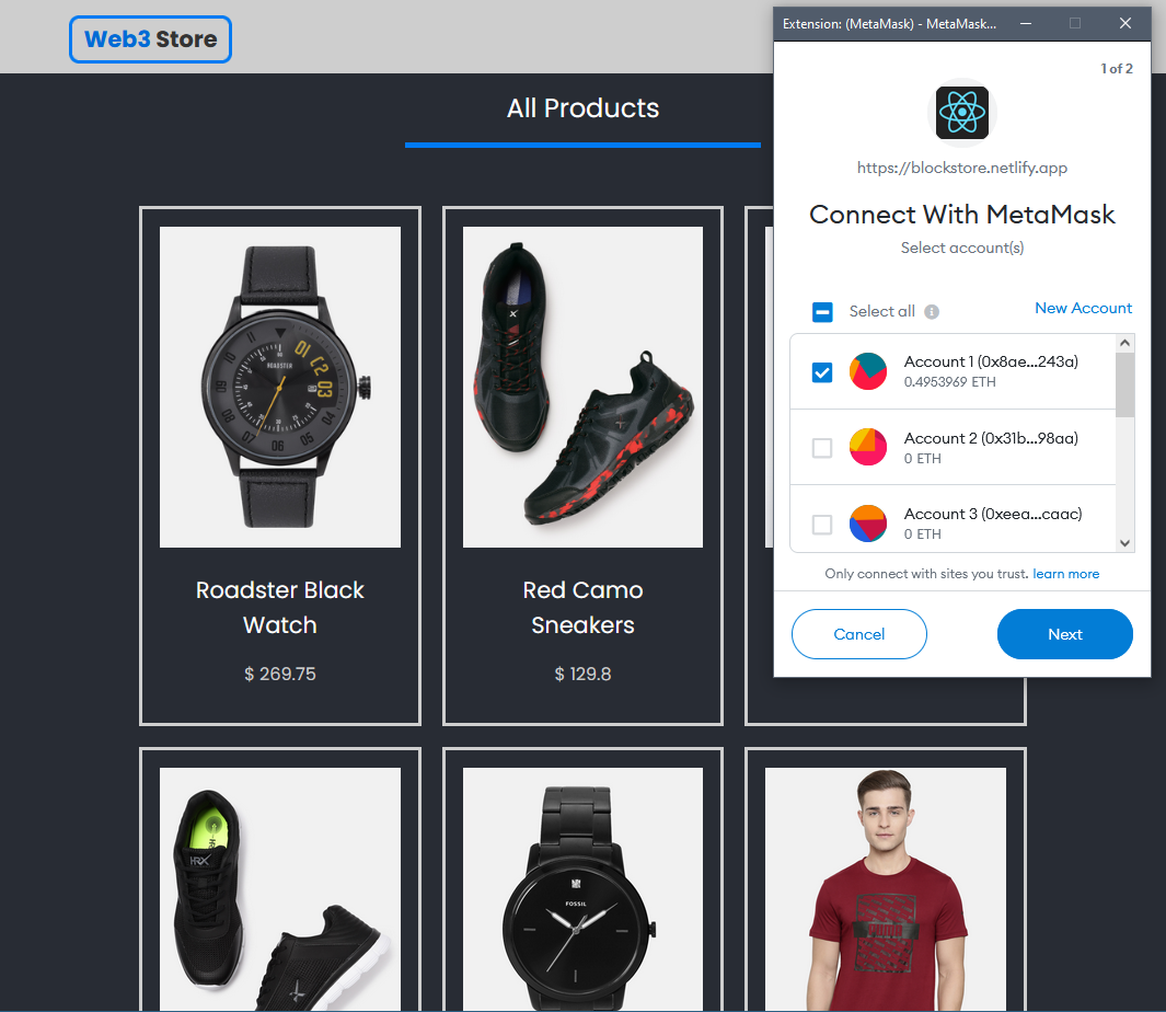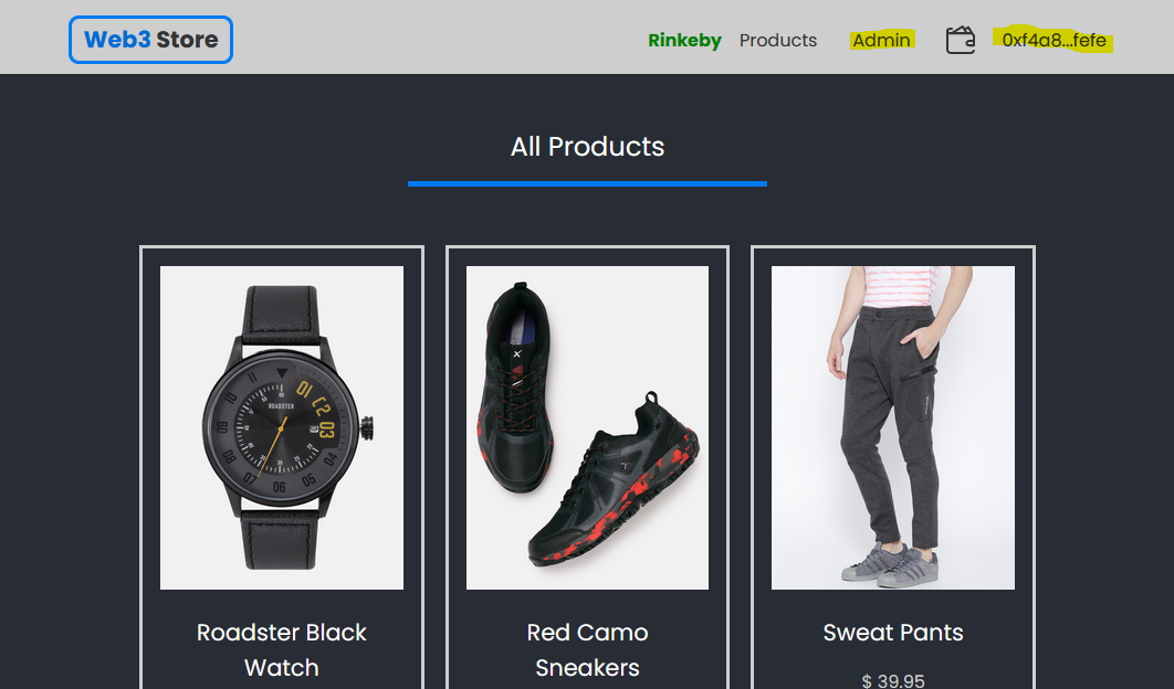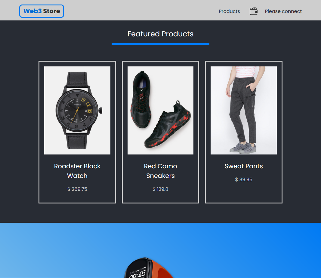 Idea source: Web3 version of a Web2 store. Used static (HTML & CSS) project as starting point
