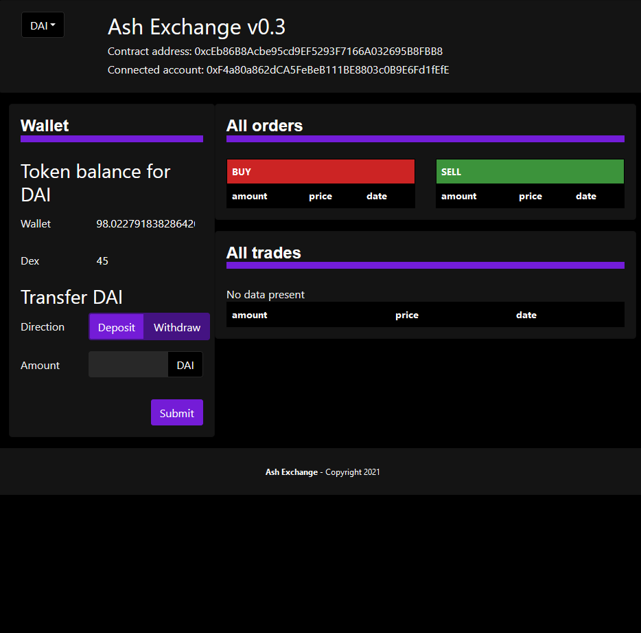 3. Navigate back to the app and deposit your DAI under the 'Wallet' section.