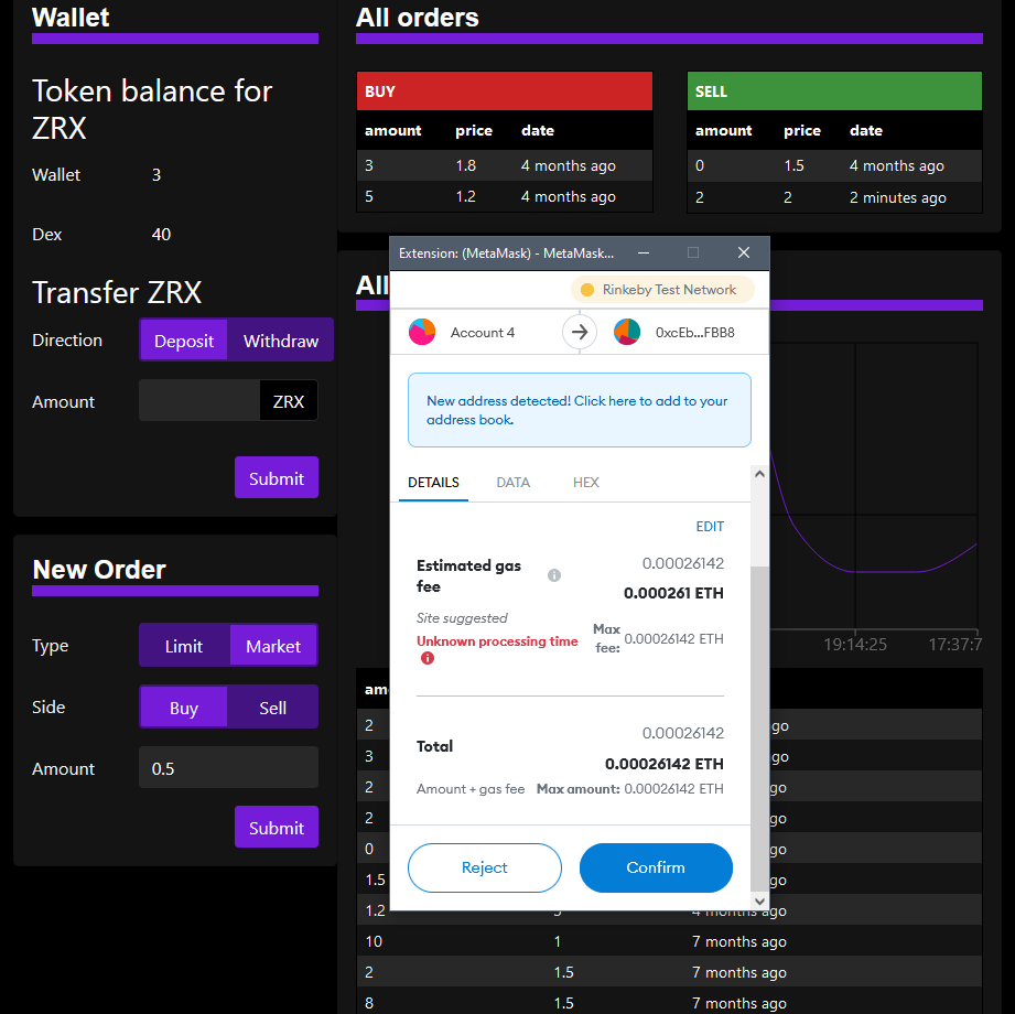 4. Use the dropdown in the top-left to switch tokens (currently ZRX & USDC are supported).